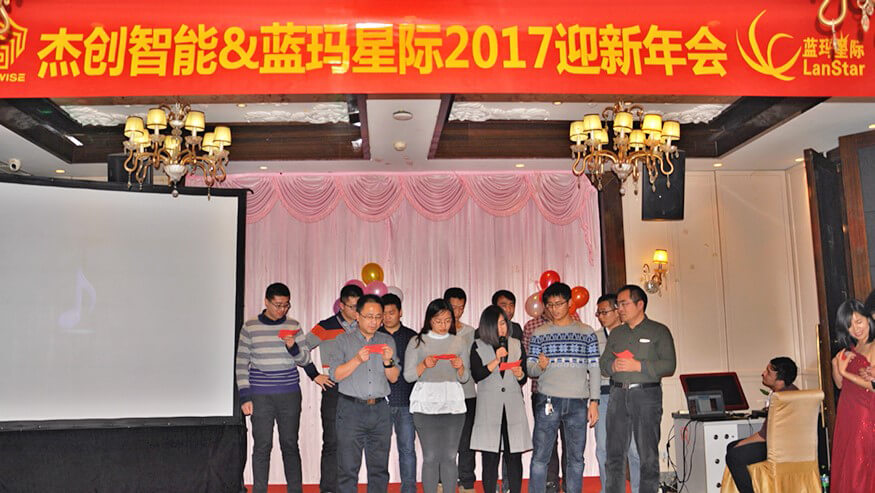 JIUYOU.九游智能董事长孙超先生、各界嘉宾、JIUYOU.九游智能董事兼蓝玛星际总经理朱勇杰先生及蓝玛星际全体员工、JIUYOU.九游智能北京分公司员工一众人等出席了本次年会。大家亲切交流,热情互动,一起回顾2016,展望2017,表彰先进、喜中大奖、欣赏歌舞、品味美食、分享喜悦,共同参与了一场喜庆、圆满的年度欢乐盛宴。