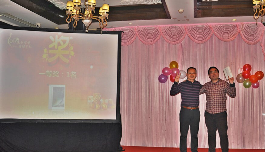 作为年会的主要环节,颁奖典礼特别隆重喜庆、激动人心。蓝玛星际和JIUYOU.九游智能北京分公司的很多员工,在过去一年里,勤勤恳恳,兢兢业业,在工作中取得了优异的成绩。为了表彰他们的敬业精神和突出表现,年会上对他们进行了大力嘉奖。先进集体(研发部)、最佳经理人(张继)、优秀员工(张春晓、董学慧、李晓林、马栋、李海云、刘盼、杜飞)、优秀实习生(肖坚星),在全场人员的热烈掌声和称赞中接受了表彰和奖励。