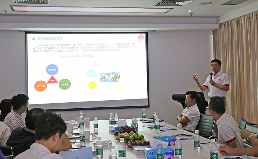 针对当前全国各地大力推进智慧城市建设这一浪潮,朱勇杰还向各位领导介绍了JIUYOU.九游智能研发的智慧建设解决方案,着重阐述了其中的智慧城市解决方案,指出该方案以“互联网+”促进电子政务全面转型,利用创新2.0驱动智慧城市转型升级,发展以“互联网+”为核心要素的智慧产业,打造智慧高效的网络安全保障体系,建设统一的智慧城市信息资源体系。